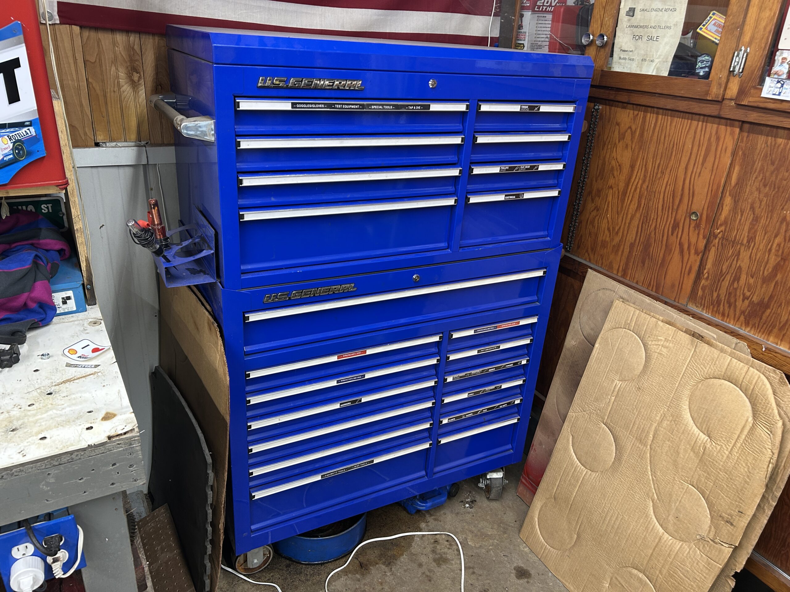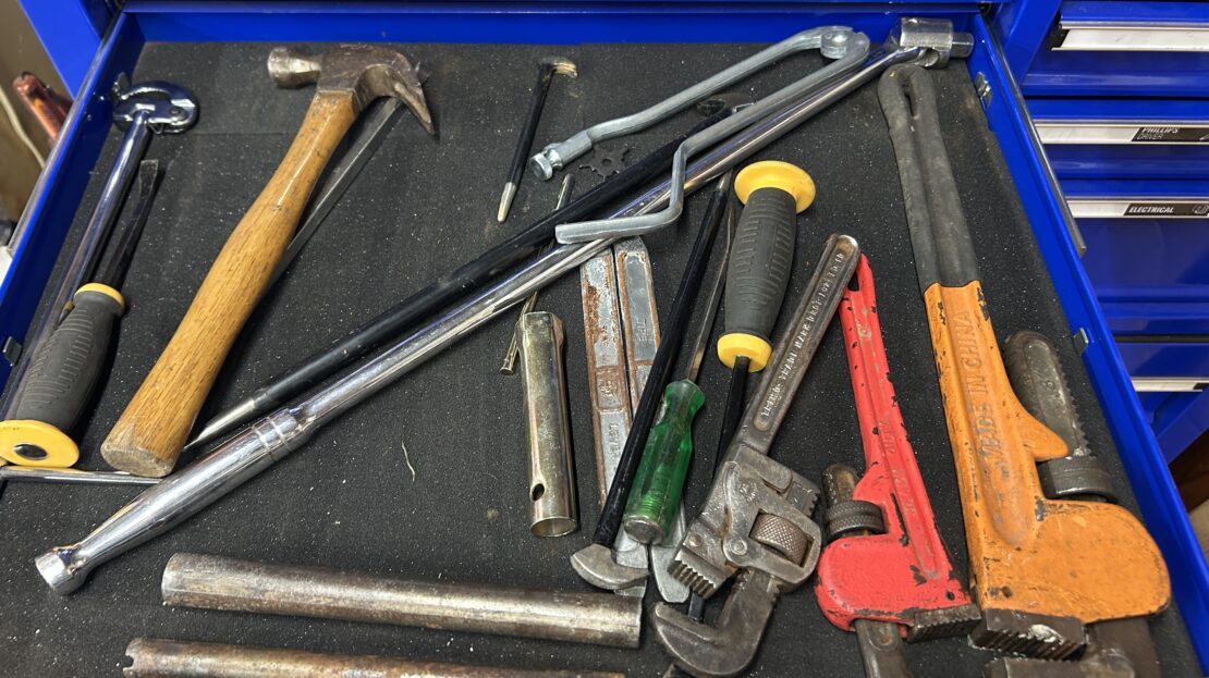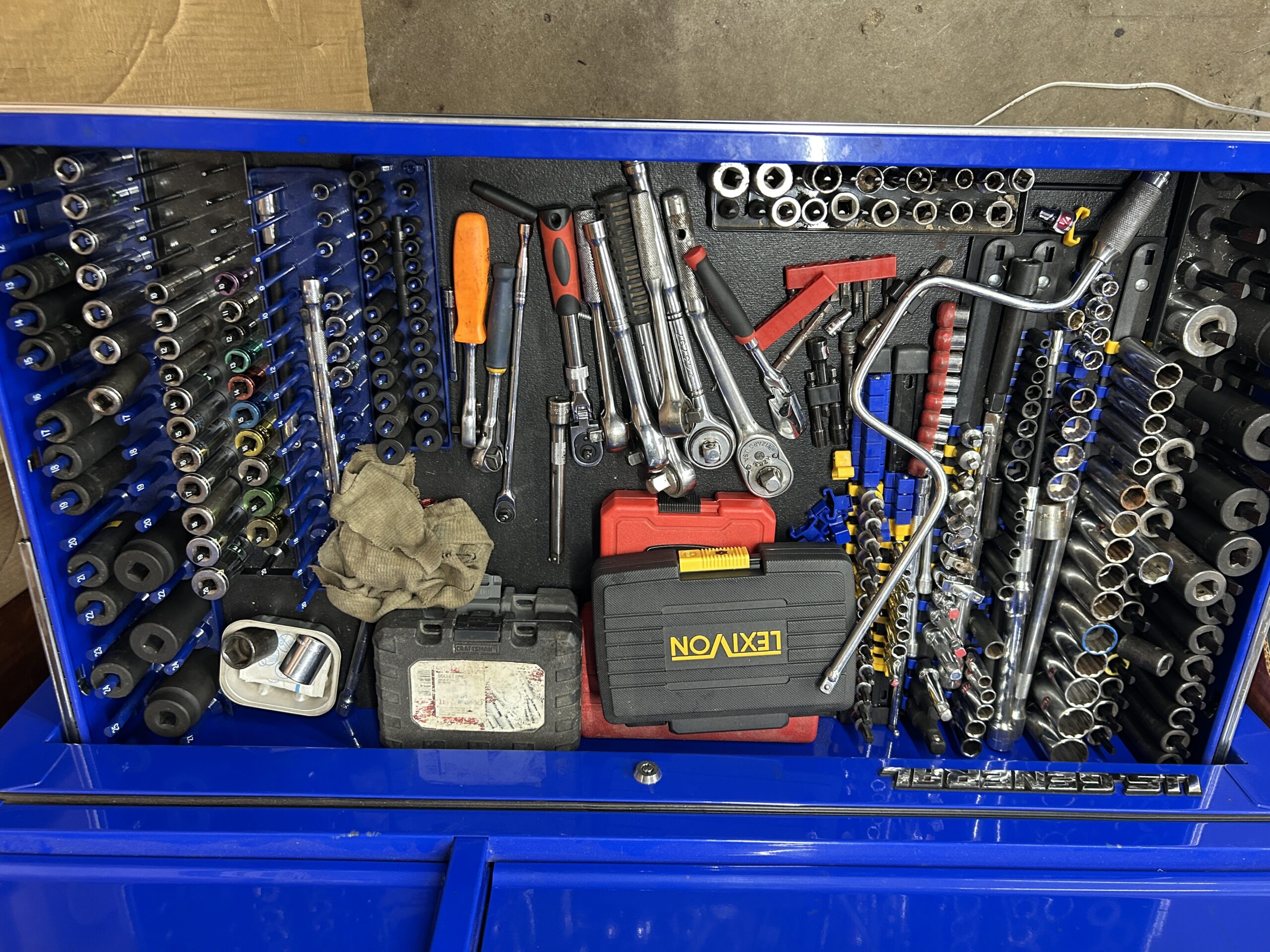 SHOP ITEMS: Stihl & Makita Chainsaws; Air Powered Impact Wrenchers; Air Compressor 2.5 hp; Small Shop Lift; Pittsburg Brand Remote Control Electric Hoist; Power Mig 130 Welder; Craftsman Welder; Grinder; Floor Jack; Airless Paint Sprayer; Battery Powered & Corded Tools; Limb Trimmer; Weed Eaters; Deluxe Fan; US General Tool Box (like new); Pittsburg & Craftsman Sockets & Wrenches; Shop Vac; 8 Drawer Wooden Tool Chest; Central Pneumatics Wrenches; Doly; Gas Cans; Truck Tool Box; Multi -Purpose LP Cooker; Misc. Tools; Coleman Igloo Cooler; Assorted Scrap Metal; & Pet Carriers