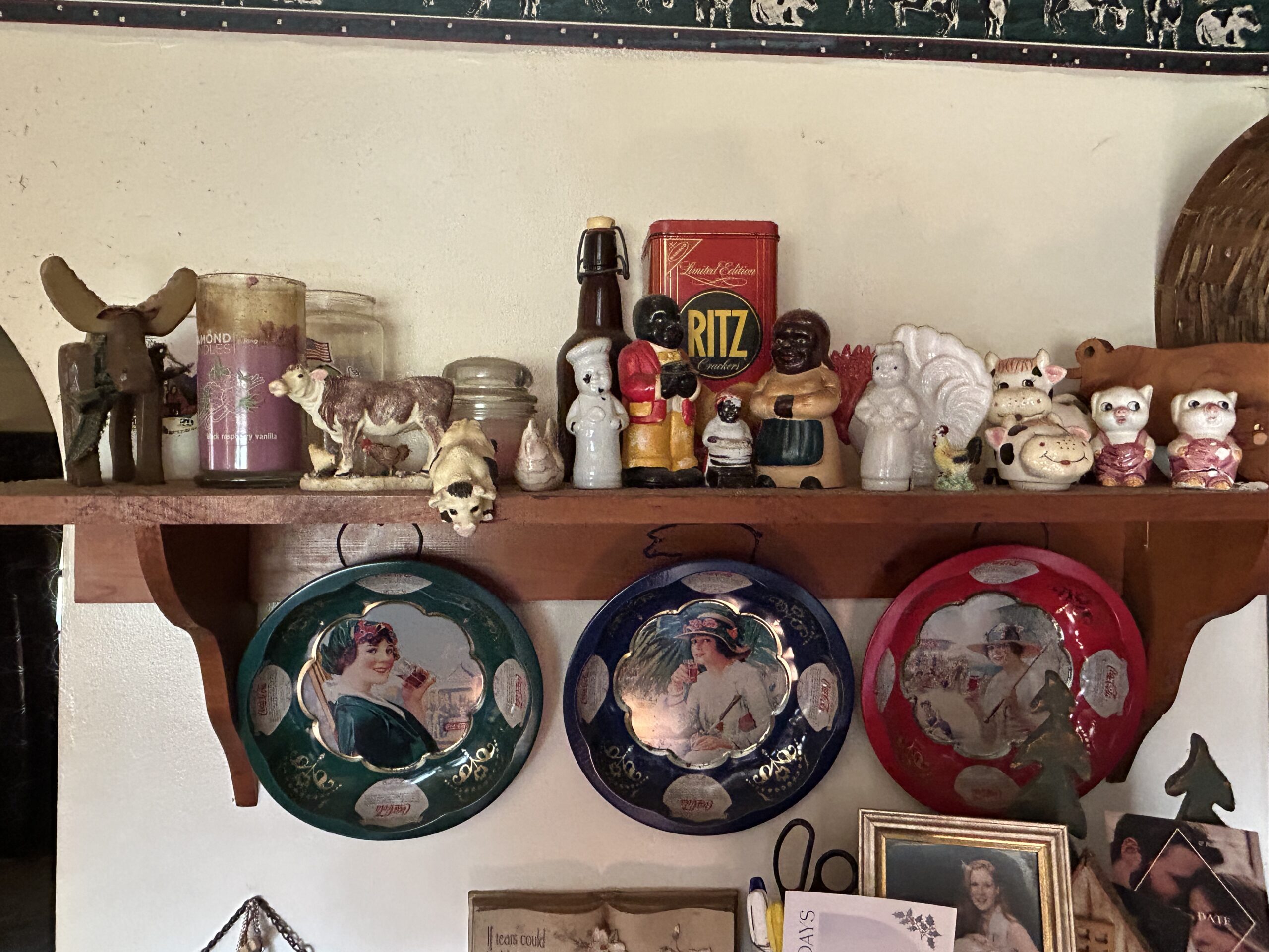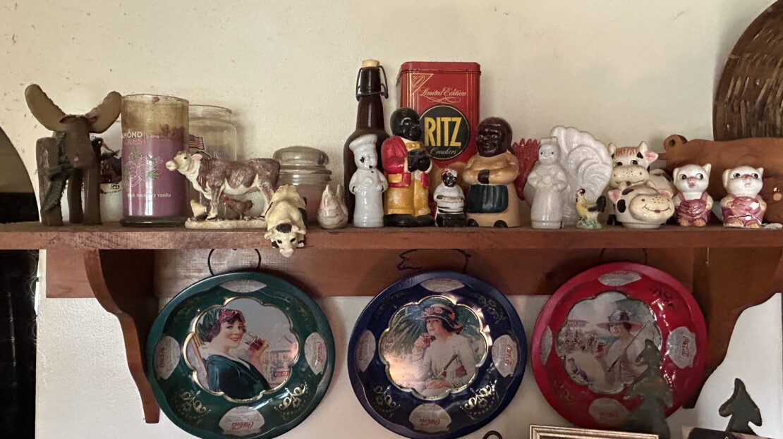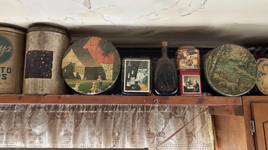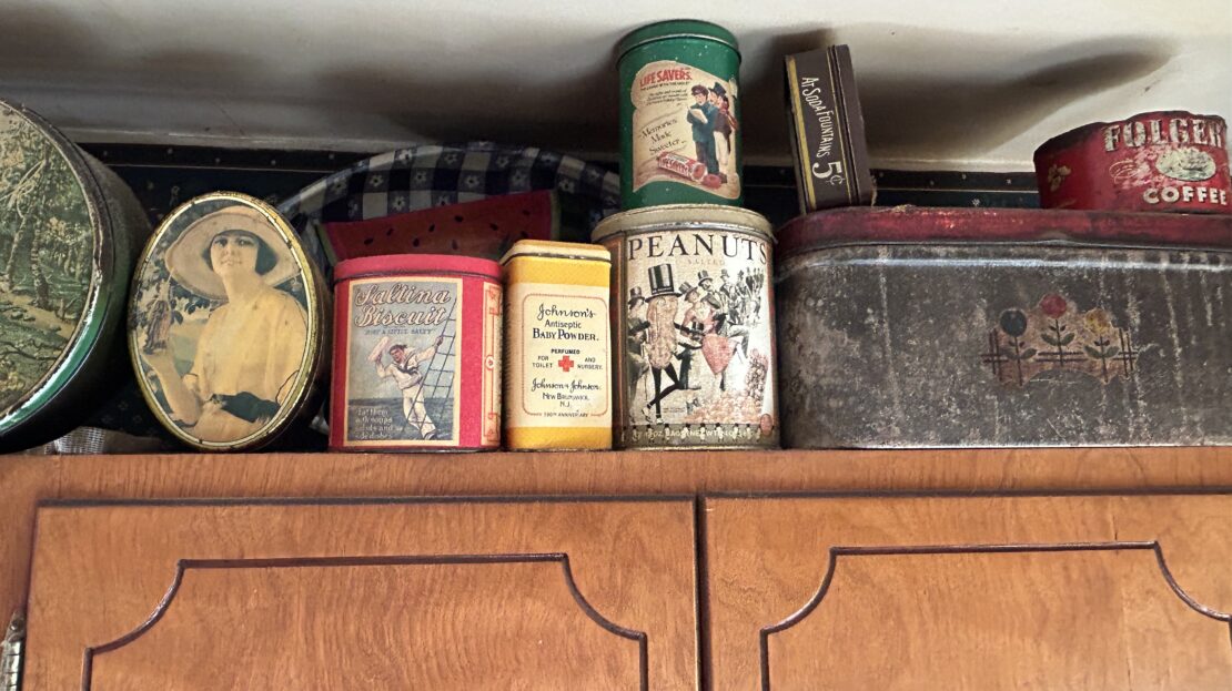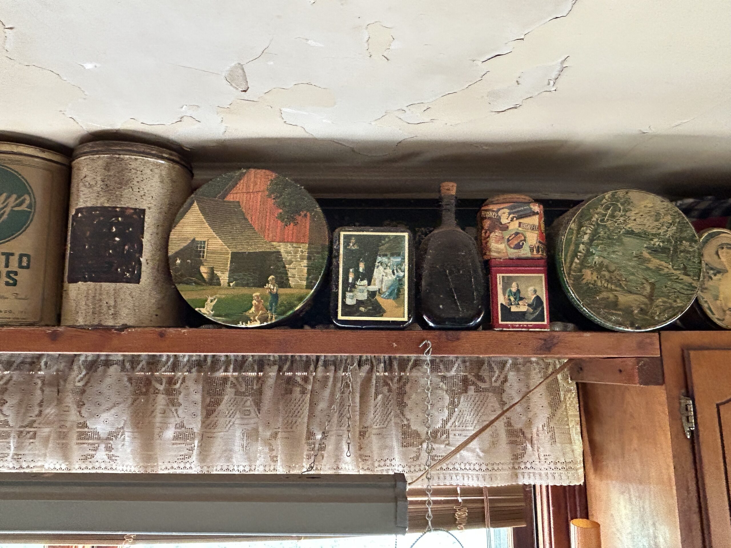 COLLECTIBLES: Large Tin Collection; Trinkets; Cigarette Lighters; Bottle Openers (Stagg; Pabst; Schlitz); License Plates; Coca Cola Lamp; Cassette Tapes; 3 Milk Cans; Pictures; & Pitcher & Bowl